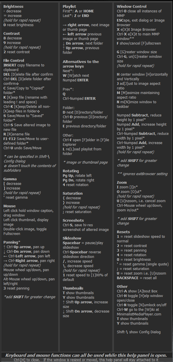 A help panel gives easy access to all the available keyboard and mouse controls, all of which can be used while the help panel is showing.
