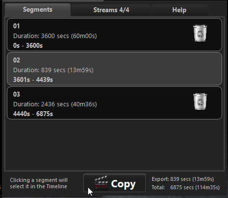 Ctrl-[E] Timeline Editor open, hold down Ctrl-Shift and move the mouse over the Export buttonExport button will change to CopyCopy, MMP will make a copy of both the media file and its corresponding .mmp file.key file[c], e.g. “myvideo [c].mp4”FFmpeg copy operationtime=hh:mm:ss.ms timestamp on the last line which will show where FFmpeg has got toCancel button or by closing this Console windowTimeline EditorFFmpeg problems with video files, when you click Export now, it often results in a successful export of your edited videoFIXES